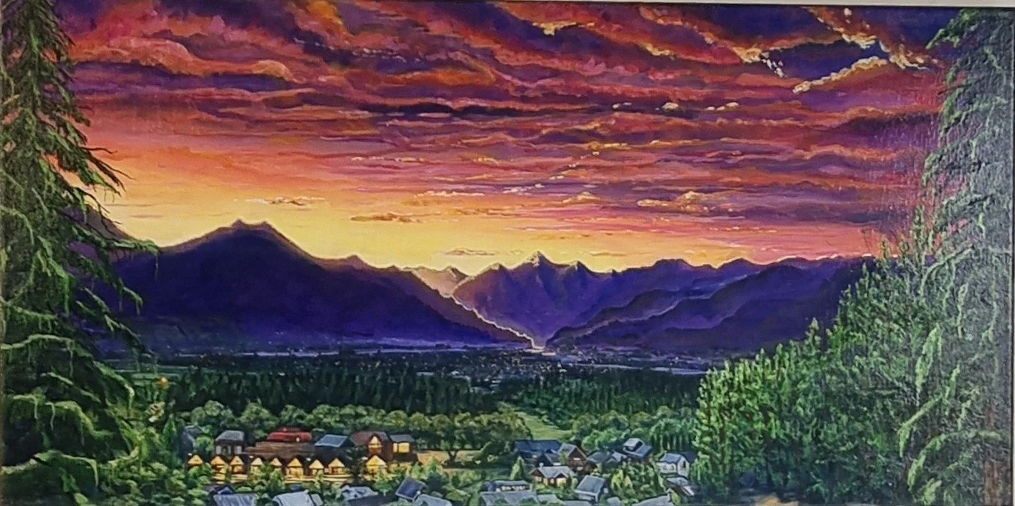 Hanmer Springs, a cherished local gem, enchants visitors much like the early days of Queenstown. The calming hot pools offer a perfect refuge after a demanding week at mahi or a strenuous mountain trek. This painting draws inspiration from a stunning photograph captured by local artist James O’Dea, showcasing the breathtaking beauty of the area.