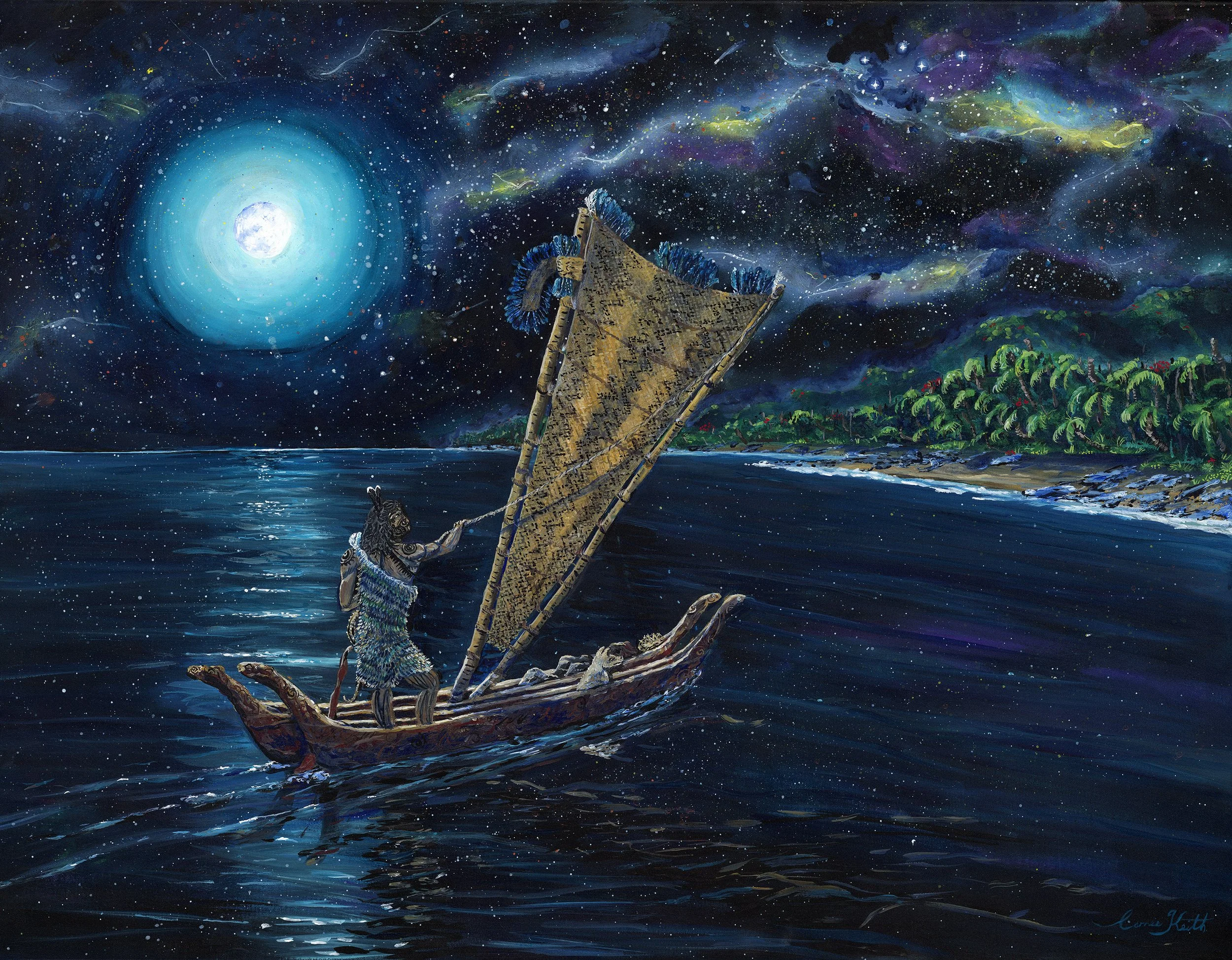 In celebration of this cultural rediscovery, a painting capturing a Ta moko artist sets the scene. He traverses the archipelago guided by his loyal kuri and the illuminating night sky, a symbol of heritage and exploration intertwined. This depiction invites us to reflect on the enduring legacy of Māori traditions, firmly rooting us in the rich tapestry of our history while we navigate the path ahead.